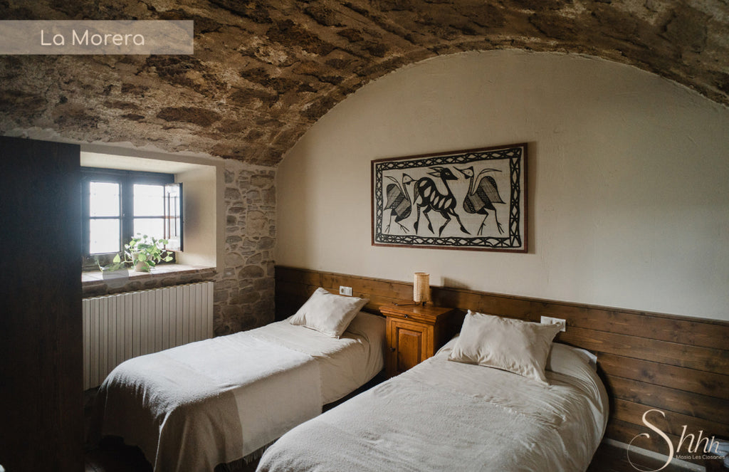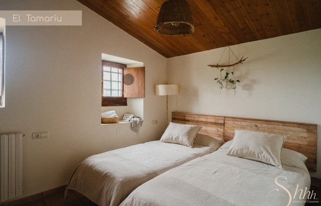 Habitación pensada para dos personas, equipada con dos camas individuales, perfecta para quienes desean compartir el retiro en un ambiente íntimo y acogedor, manteniendo su espacio personal.